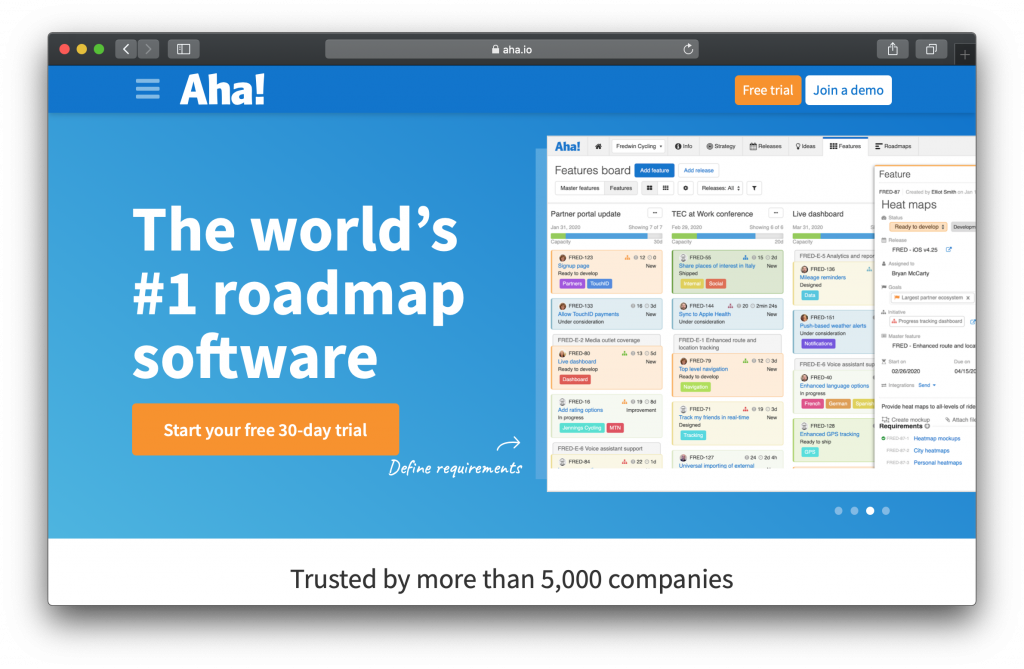 - Free trial: Aha! software also offers a free 30-day trial that includes all the features of the Business plan.