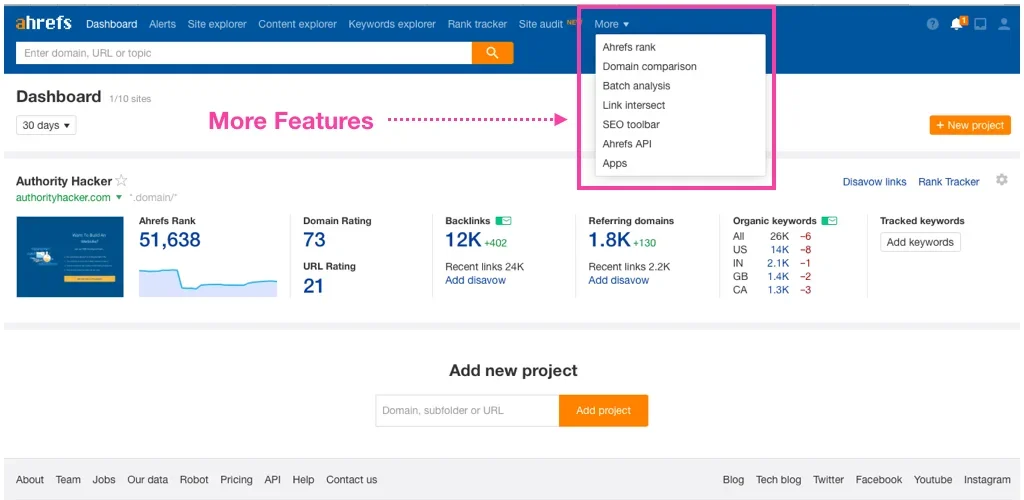 However, you get used to them quickly. More about it later; first, you should know that there are plenty of advantages to using a tool like Ahrefs, such as:
