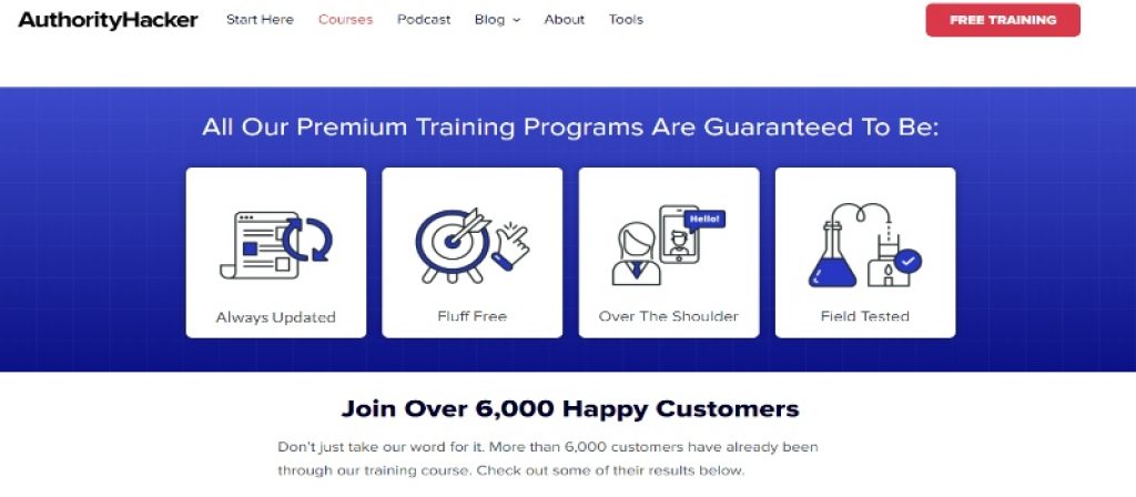 - Comprehensive Training: AuthorityHacker offers a range of paid courses, including their flagship program, the Authority Site System, which provides comprehensive training on how to build and grow profitable authority websites. The courses cover a range of topics, from niche selection to content creation, SEO, and more.
