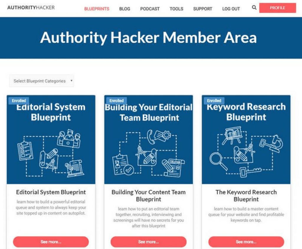 AuthorityHacker has a collection of blueprints that provide a clear roadmap for achieving specific marketing goals. These blueprints provide a clear outline of the steps needed to achieve your specific goal, along with tips and insights for optimizing each step for maximum effectiveness. Using the blueprint feature is a straightforward process. First, navigate to the blueprints section and select the one that matches your specific marketing goal. Next, review the blueprint carefully and familiarize yourself with each step. Be sure to take note of any tools that are recommended and ensure that you have access to them before getting started. Once you get comfortable with the blueprint, begin working through each step and fully understand each recommendation before moving on to the next. Throughout the process, be sure to track your progress and make any necessary adjustments based on your results. Don’t be afraid to experiment with different approaches. With a wide range of blueprints to choose from, you’re sure to find one that matches your specific marketing goals and needs. Whether you’re a seasoned marketer or just getting started, these blueprints provide a valuable resource for achieving your online business goals quickly and easily.