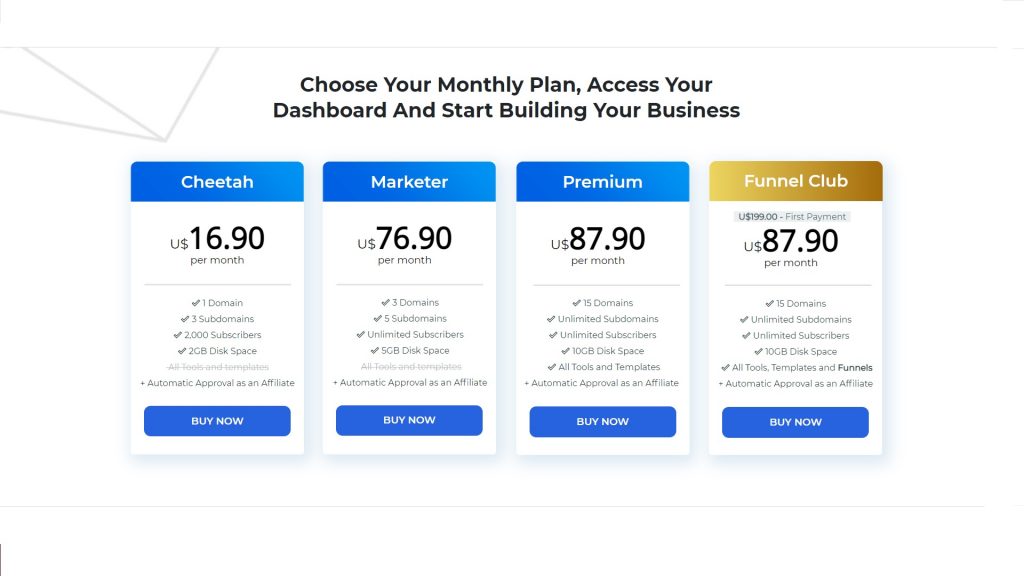 - If you’re just beginning up and on a limited budget, the Funnel Club plan is pretty pricey.