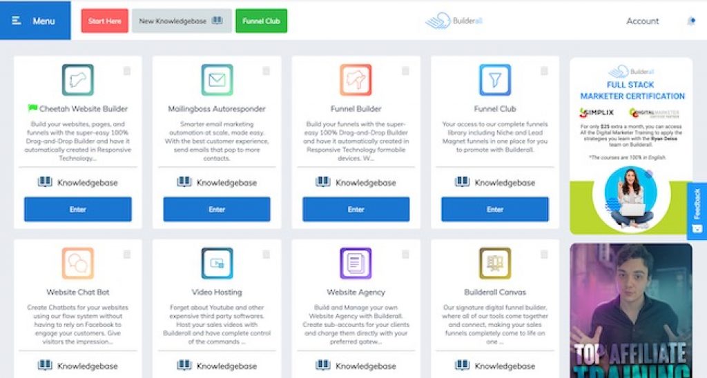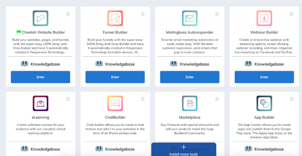 Builderall features a substantial knowledge library that aids users in becoming familiar with the myriad options it offers. Choose from more than 400 training and tutorial films that guide you through the many steps and phases of building up a site, email marketing, sales funnels, as well as other things.