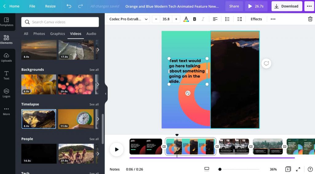 I found that simple adjustments like exposure, contrast and white balance are not supported by the application, but you may tweak transparency and add frames and graphics to your films. However, there are some lovely options for original text overlays and frames. As a user of Canva Pro, you get access to only 6 transitions that can be used to link clips together seamlessly. Although you can add background music that has already been recorded, there is no ability to adjust the volume of your video clips or use noise-reduction techniques like in consumer video editing software.