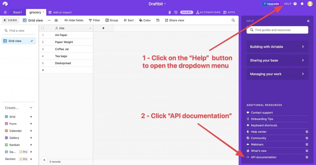 Let’s look at some of the customer support options that Airtable provides to its users: