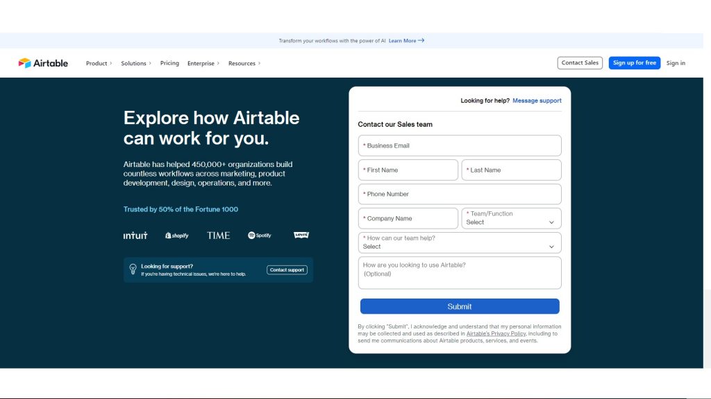 Enterprise Support: Airtable offers personalized support for enterprise customers, including a dedicated account manager and priority support.