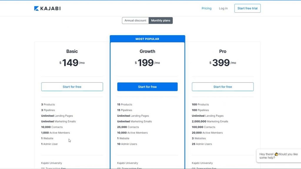 Building your account is easy, and you have the choice of three pricing plans. You can also involve Kajabi Access in any plans to make twice as many tools.