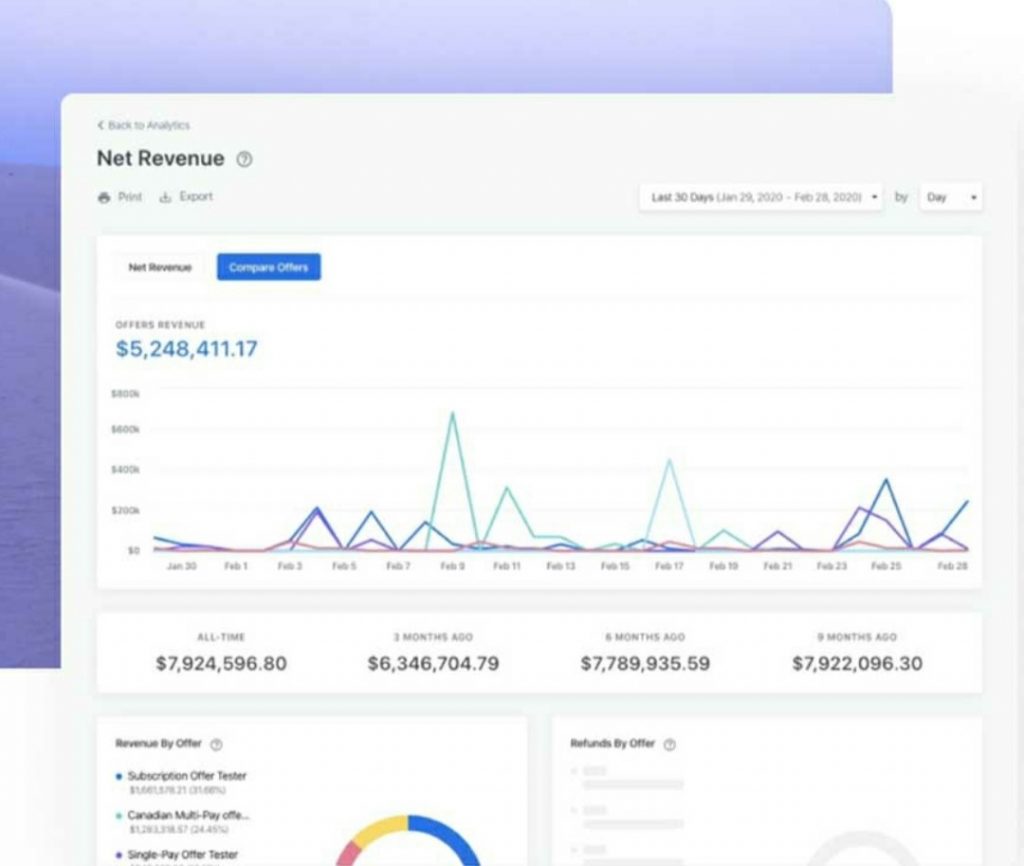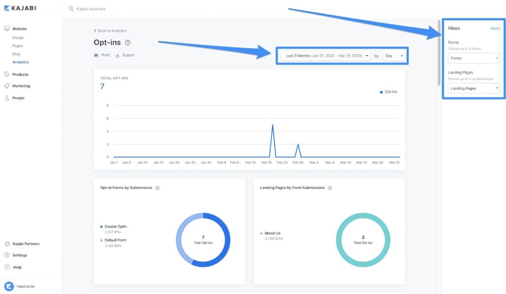 You can analyze the reports by date or by offers. You can switch from an everyday view to a weekly, monthly, or annual checkout in Kajabi.