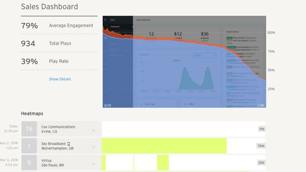 There are choices for tracing engagement rate, play rate, views, etc. You can also evaluate how students engage with your videos and where they pause, using the pictorial engagement viewer and video heatmaps.