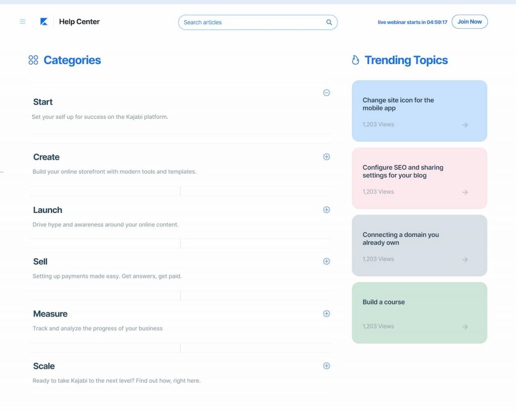 This includes providing anytime chat support through live streams. In this single central hub, help is one click away. Kajabi help center provides you with every solution to the complicated questions about the activities in your account.