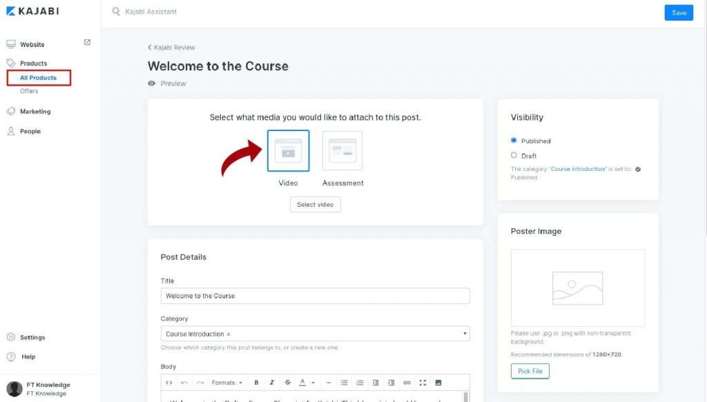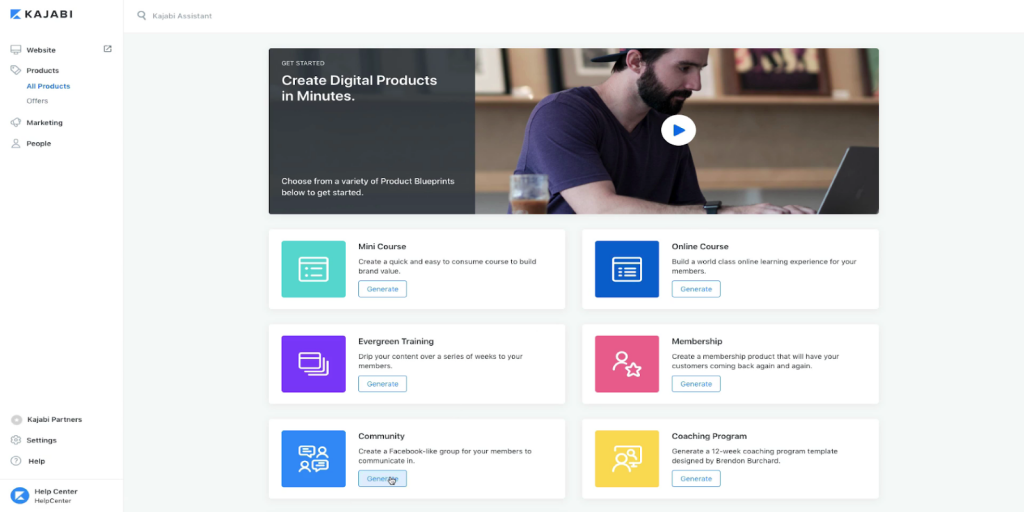 Once you’ve developed your account and enrolled as a Kajabi user, you can begin to make a product. Products comprise your online courses, membership sites, education tools, and resource centers viewed digitally by your customers.