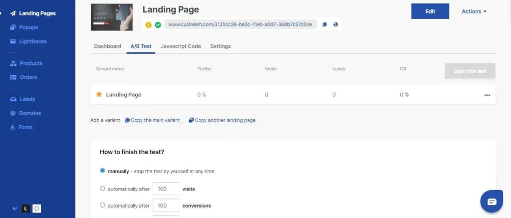 Landingi takes the back-end complexity off your hands for you, so you just have to focus on your conversion criteria.