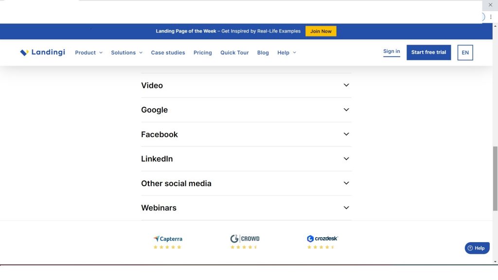 Before I started using Landingi, I had gone through online reviews and Reddit, where one of my concerns was about the quality of support. Especially as a new user, there is always a possibility for me that I might encounter issues or become confused with something. However, it was good to see there weren’t many major complaints about the Landingi customer support online, and in my testing, I had a similar experience. I know there were some complaints about the chat support initially that were discussed on various platforms online, but the company addressed this issue by adding a live chat.