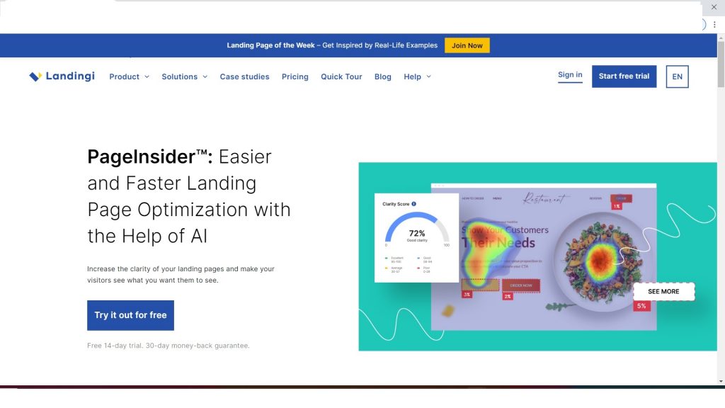 I found the Landingi PageInsider feature useful as it uses AI to give lots of useful information. It analyzes the visibility of a page using a smart map and shows the Clarity Score. This helps understand how well a page is performing and what needs to be improved. It analyzes the visibility of a page using a smart map and shows a Clarity Score too.