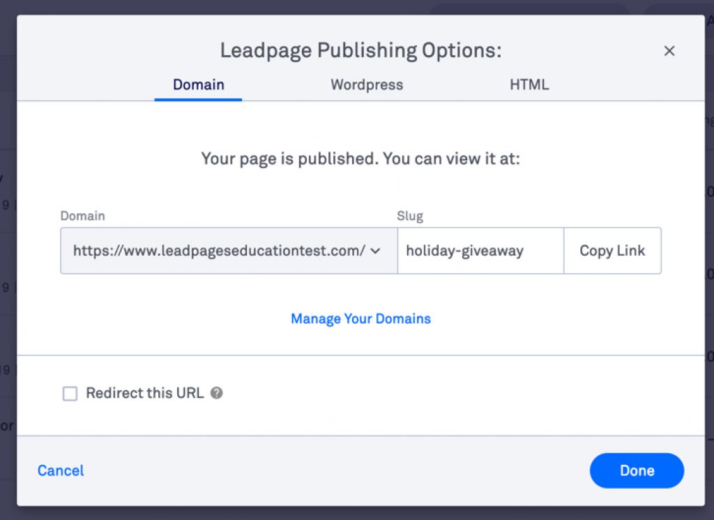 After you are done creating your landing page, it’s time to publish it on the web. I like that Leadpages provides a premium WordPress plugin that lets you link your landing pages to your WordPress website.