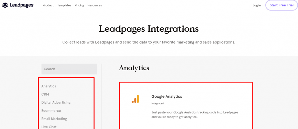 LeadPages’ Zapier integration allows you to connect with thousands of marketing and automation tools. Furthermore, the landing page builder allows you to include Google Analytics and other marketing tools, which can be accessed here.