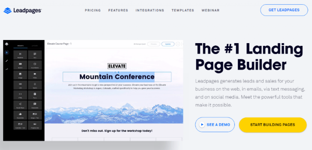 Leadpages is one of the best landing page builders that allows one to create high-converting landing pages. You can even add these landing pages to your WordPress website if you have any.