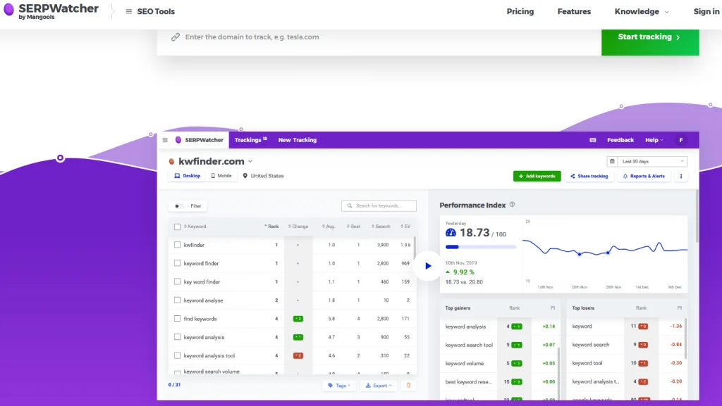 What is the use of all the SEO efforts when, as a professional, you are not able to track the progress and impact of your SEO efforts? Here, Mangools software offers SERPWatcher Rank Tracker and, like other apps in the Mangools suite, I found it to be well thought out