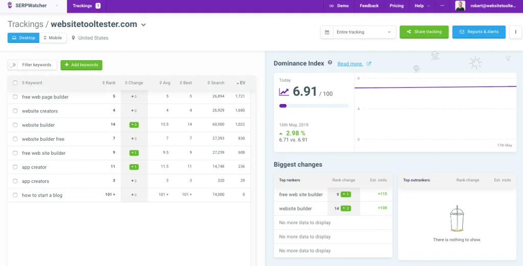 Among the tasks carried out by the SERPWatcher Tracker are monitoring the rankings, producing an extensive report, and offering an in-depth analysis to determine whether the SEO efforts you have made are having an impact. It is a rank tracking tool that monitors a website’s rank in search engine results pages (SERPs)and uses an algorithm. The algorithm takes into account a variety of factors, including the website’s age, the number of backlinks it has, the keywords it is targeting, and more. In my testing, I have observed that SERPWatcher also offers a suite of features that help users track their progress and improve their rankings. These features include keyword research, backlink analysis, and competitor analysis.