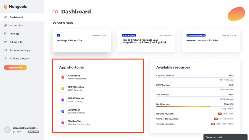 Ans: Mangools offers a set of 5 apps combined, and these are :