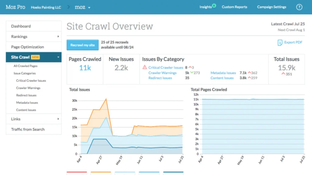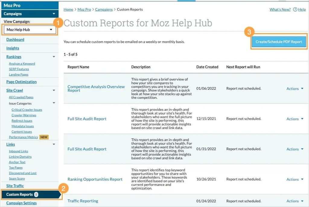 Here’s how you can use Moz Pro’s Website Crawling tool for your SEO project: