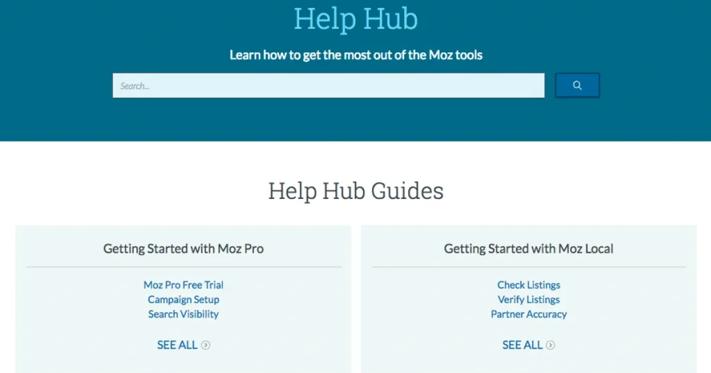 Furthermore, Moz Pro has a Help Hub that is a comprehensive source of knowledge about typical workflows and troubleshooting issues. It provides instructions on making the most of the company’s tools. This hub acts as a one-stop shop for users looking to advance their knowledge, solve their queries, and even elevate their abilities in SEO.