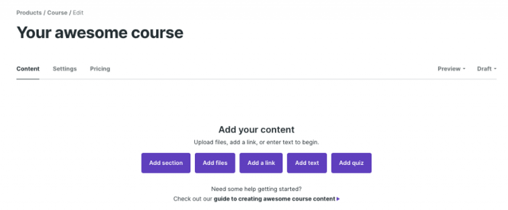 In the content area, you can involve sections, upload files, make quizzes, and so on. In the Settings tab, you can organize your course, put a start date, and open/close enrollment. In the Pricing tab, you can set your pricing for your commodity or select to give it away for free.