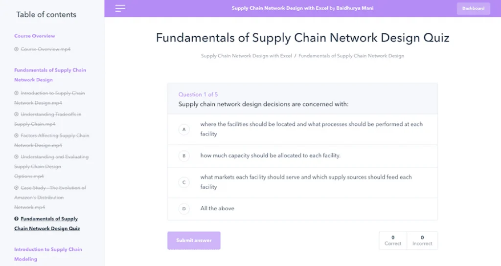You can assess your students’ understanding and ensure that they are suitably learning the concepts in your course content by comprising engaging and interactive tests after each of your lesson modules.