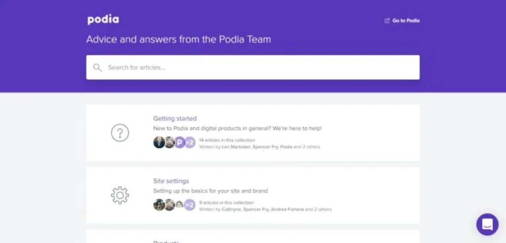You can also get a touch with customer support through email if live chat is no longer accessible to you. Also, Podia has a comprehensive knowledge library that has a lot of reserves on how to do numerous things on the platform. So you can just search through the knowledge base.