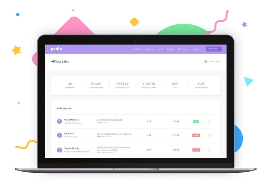 If you like to influence affiliate marketing to boost your courses, Podia has got you wrapped up. With Podia, you can add associates to your supply and build different affiliate links for all your products. Also, your affiliates get a personal dashboard where they can enter their affiliate links and trace the sales and commissions.