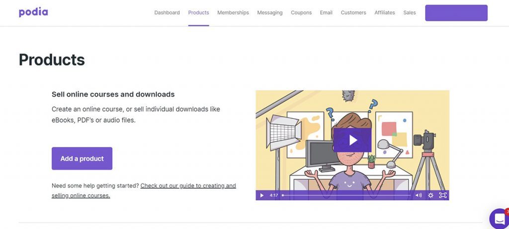 One problem with assigning cos to “Products” in Podia is that you can’t have numerous price points. So if you like to sell the basic edition of your course for $99 and the premium version for $199, there is no simple way to do that in Podia.