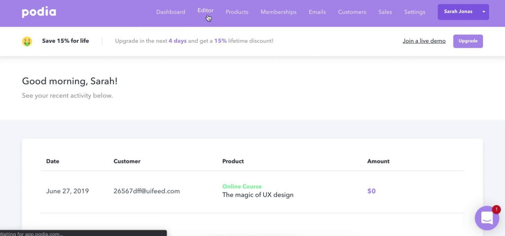Ans: Podia has a very advanced UI/UX, and is easy to use. It doesn’t have any understanding curve. You’ll find it instinctive to set it up.