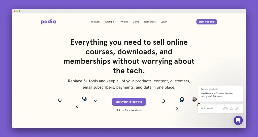You can also join one of Podia’s day-to-day Q&A rounds. However, if you want someone to talk to, you can use the live chat characteristic to get in touch. Live chat is accessible from 9 AM to 6 PM (ET) on weekdays and from 9 AM to 5 PM (ET) on weekends.