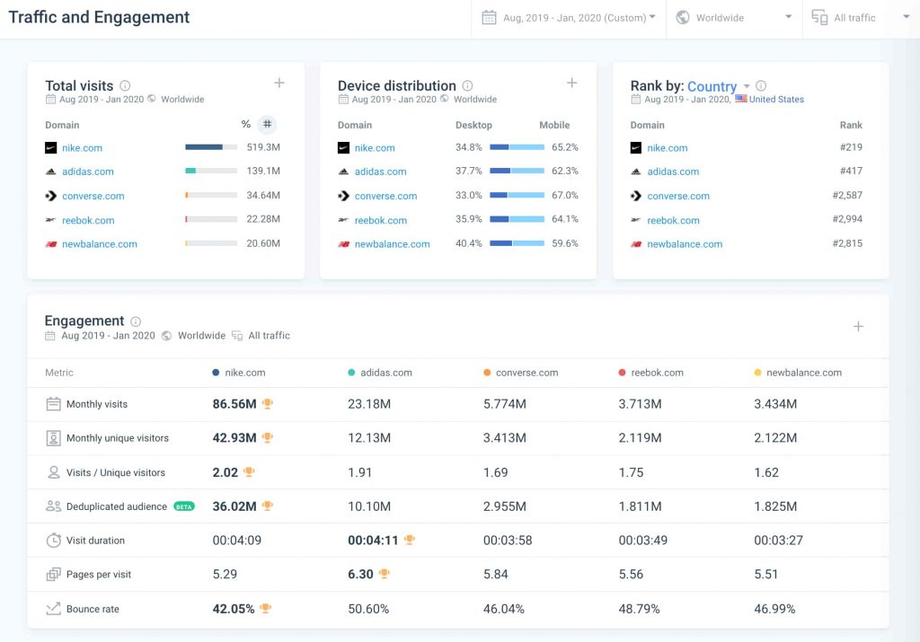- Many branded users appreciate Simialarweb to identify the accurate competitors in the business and understand their business with the traffic they acquire.
