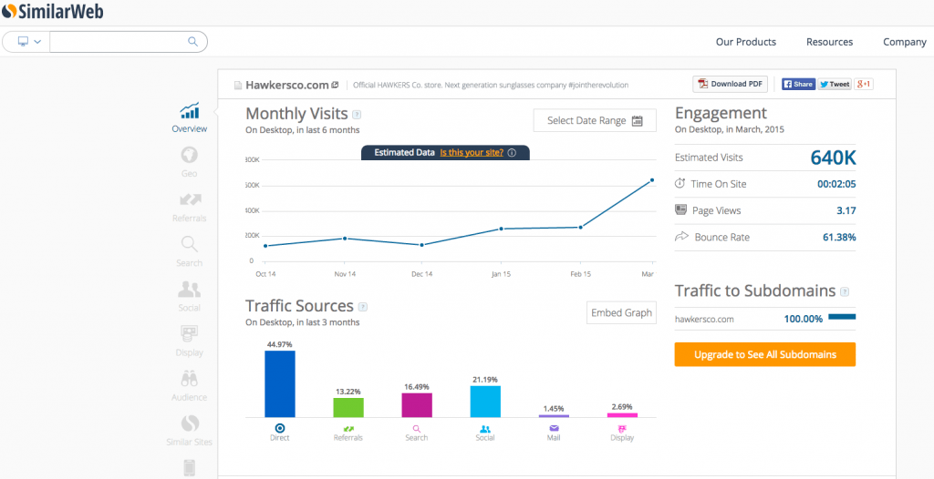 Similarweb is the longest gateway for a complete insight into the rival websites, including audience metrics, keyword performance, traffic sources, and geo profile. In addition, it delivers an advanced version of web-tracking tools which is comprised of most keywords searched to the metrics of total traffic on that site.