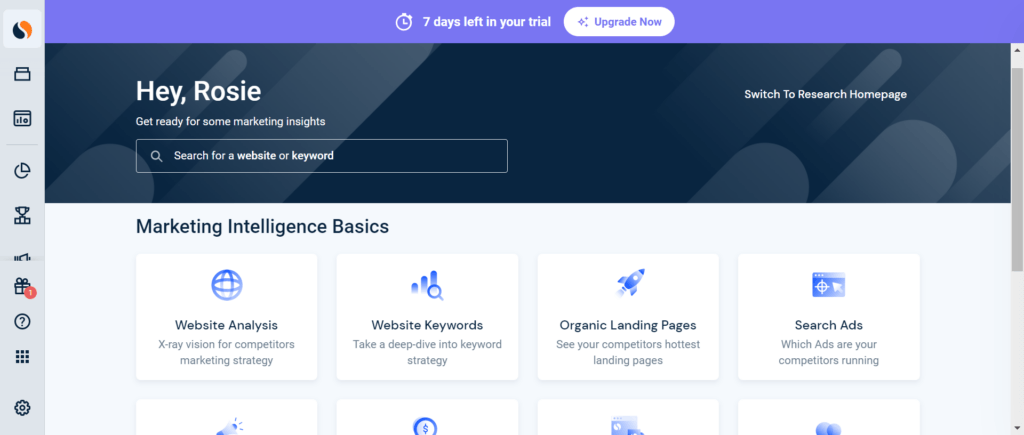 - First-time users can experience the Similarweb platform with numerous functions in their seven-day free trial.