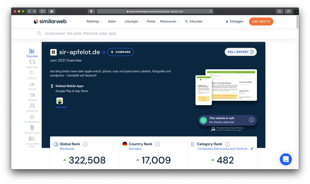 – Direct measurement: loads of apps and sites elect to stake their first-party analytics with similarweb.