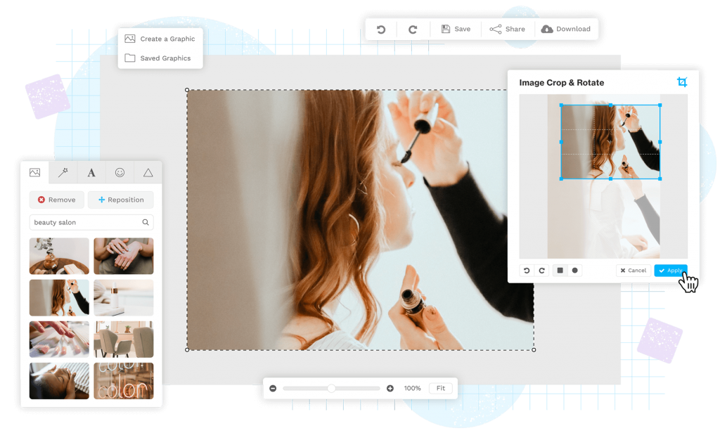 Snappa’s user-friendly interface makes designing graphics a breeze. You can easily drag and drop elements onto your canvas, adjust colors, and add effects to create the perfect graphic for your needs. With its built-in image editor, you can crop, resize, and edit your images without the need for another application.