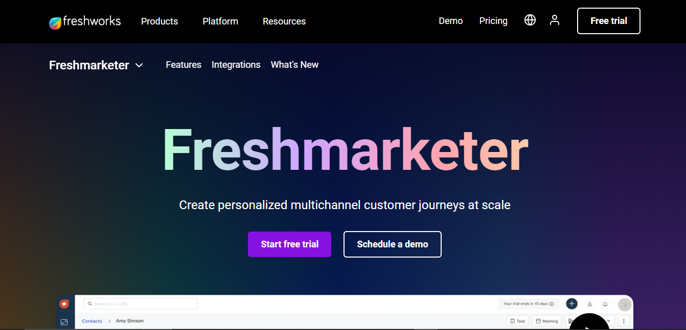 6. Automation Capabilities:- Freshmarketer’s Automation Capabilities redefine marketing efficiency, offering a robust suite of tools to automate repetitive tasks and streamline workflows. This feature enables marketers to create, schedule, and deploy automated campaigns across various channels, ensuring timely and personalized interactions with their audience.