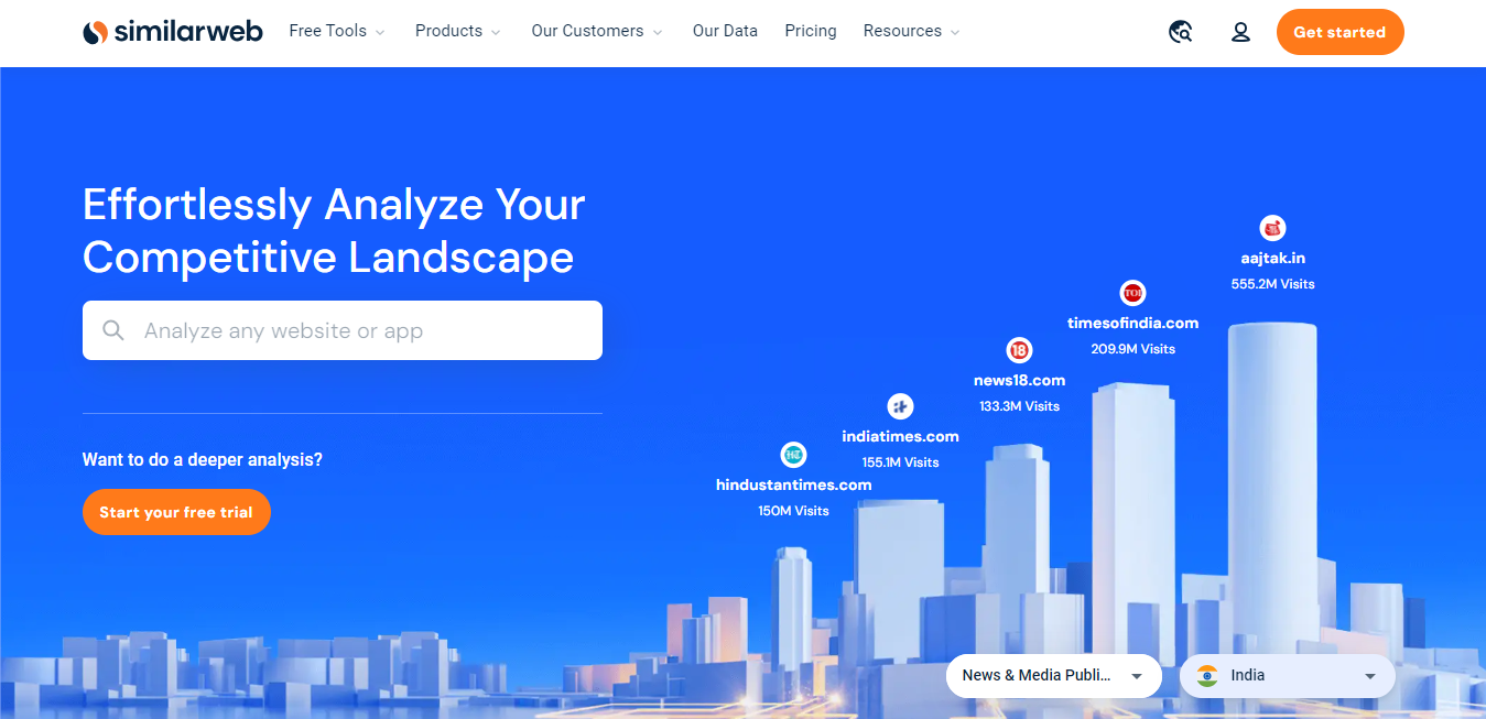 Similarweb is a prominent market intelligence platform launched in 2007, providing valuable insights into digital market dynamics and online performance. Utilizing advanced algorithms and an extensive database, Similarweb offers comprehensive analytics, enabling users to analyze web traffic, understand audience behavior, and benchmark their digital presence against competitors. Key features include competitor benchmarking, keyword research, and market trend tracking. With a user-friendly interface and customizable dashboards, Similarweb caters to a wide audience, from marketing professionals to business executives. The platform’s data-driven approach empowers businesses to refine digital strategies, optimize marketing efforts, and make informed decisions based on market trends. In essence, Similarweb is an indispensable tool for organizations seeking a holistic view of the digital landscape, facilitating competitive analysis, and supporting strategic decision-making for success in the online realm.