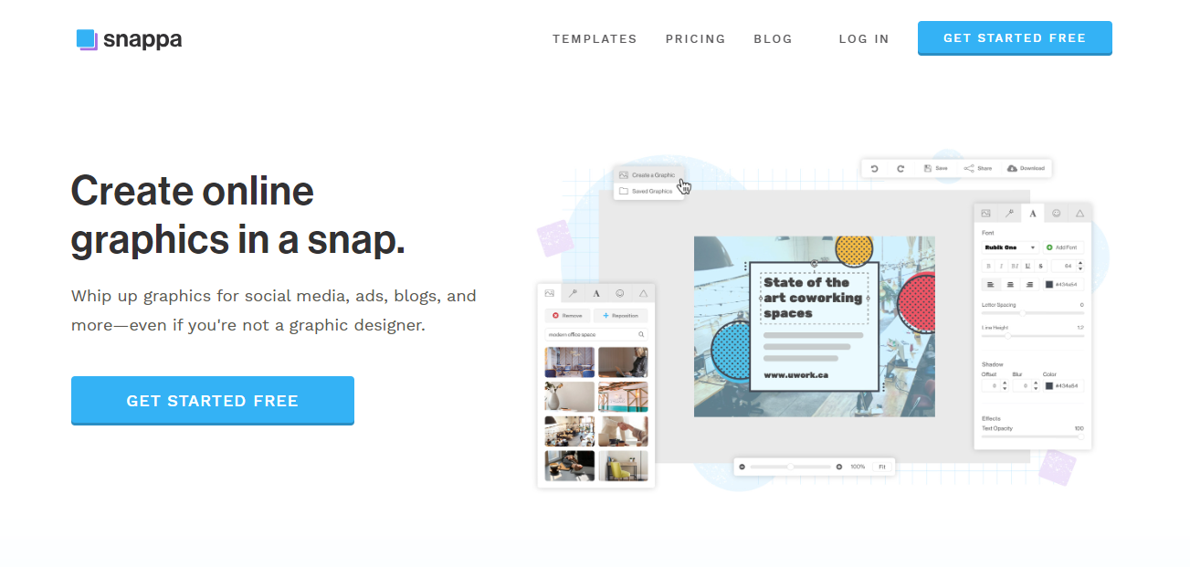 3. Pre-designed Templates: Snappa’s pre-designed templates offer users a valuable head start in the graphic design process. These templates cover a wide range of purposes, including social media posts, blog graphics, advertisements, presentations, and more. With Snappa’s diverse collection of templates, users can easily find one that fits their specific needs or style preferences. Whether you’re promoting a product, sharing a blog post, or announcing an event, Snappa has a template to suit your needs.