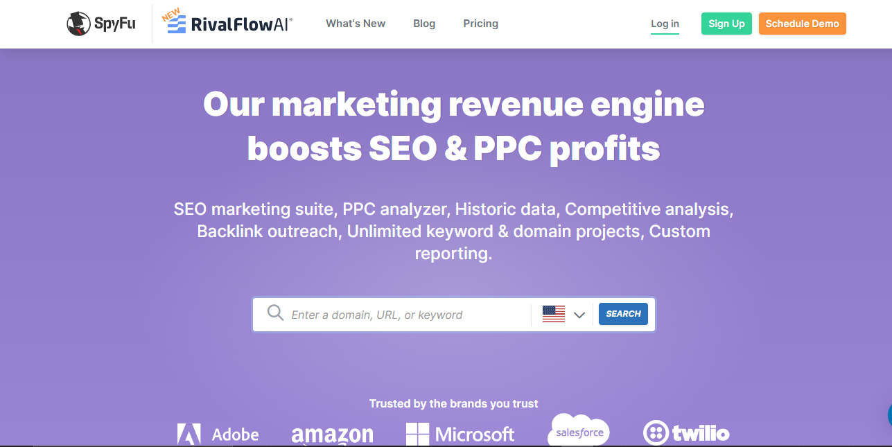 SpyFu is a robust competitive intelligence tool designed for digital marketers seeking to gain a competitive advantage in the online sphere. It provides a comprehensive suite of features to analyze competitors’ digital marketing strategies, including keyword research, PPC analysis, and SEO insights. With SpyFu, users can uncover valuable data on their competitors’ keyword rankings, ad campaigns, backlink profiles, and overall online presence. This enables informed decision-making and strategic planning to optimize their digital marketing efforts effectively. By leveraging SpyFu’s powerful analytics and actionable insights, marketers can identify untapped opportunities, refine their strategies, and outperform competitors in search engine rankings and paid advertising campaigns. Ultimately, SpyFu empowers businesses to stay ahead of the curve, enhance their online visibility, and achieve sustainable growth in the dynamic and competitive landscape of digital marketing.