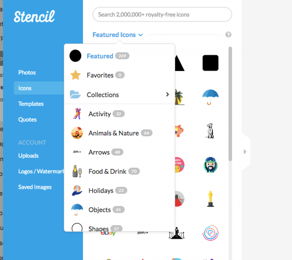 Another great feature of Stencil is its extensive library of royalty-free icons. Stencil offers over 1 million icons in a wide range of styles and categories, including business, education, technology, travel, and more.