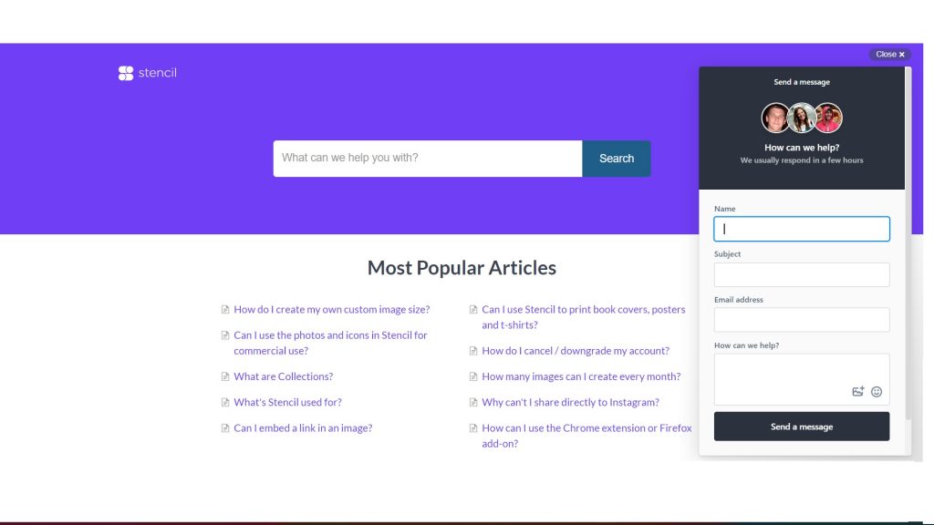 - Live chat: Stencil offers a live chat feature for users to get real-time assistance from a support representative. The live chat is available during business hours and is accessible from the Stencil website.