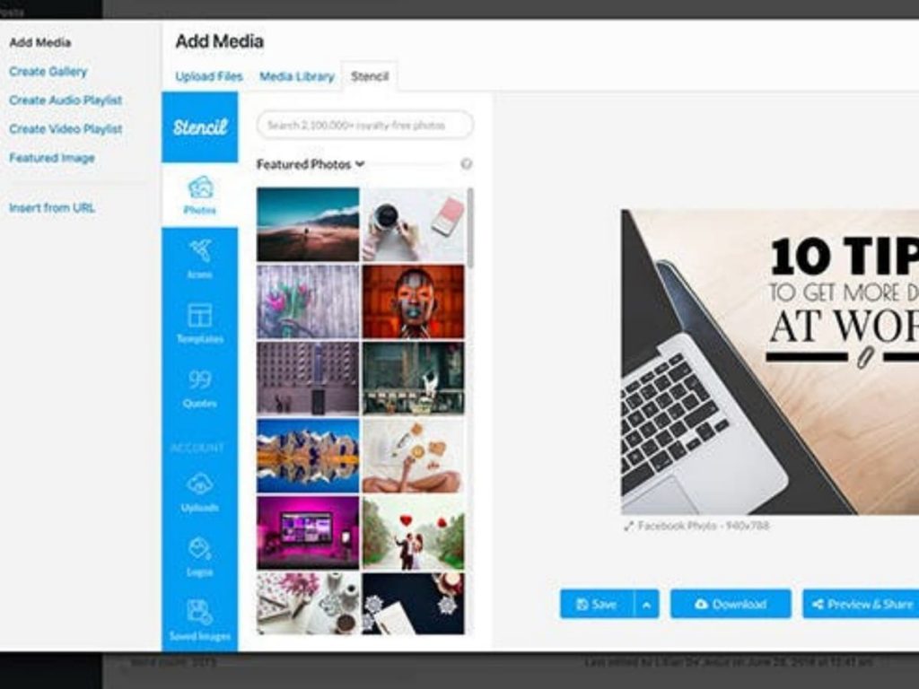 In addition to pre-set sizes, Stencil also allows you to enter custom dimensions to ensure that your image is the exact size you need. This feature is particularly useful for businesses and individuals who need to create graphics for their websites, presentations, or other digital channels.