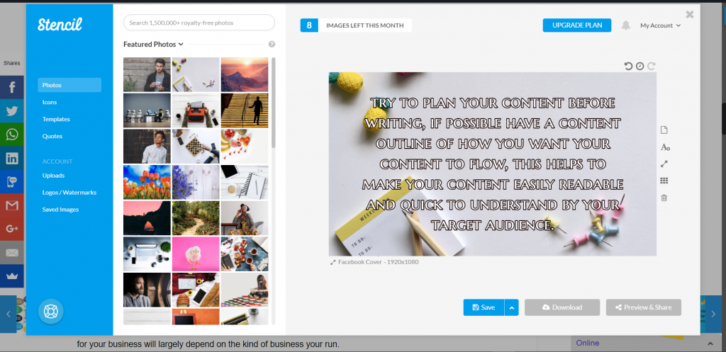 This feature in Stencil allows you to create stunning, high-quality graphics specifically tailored to social media platforms. With this feature, you can design eye-catching graphics that are optimized for social media, and share your content more effectively.