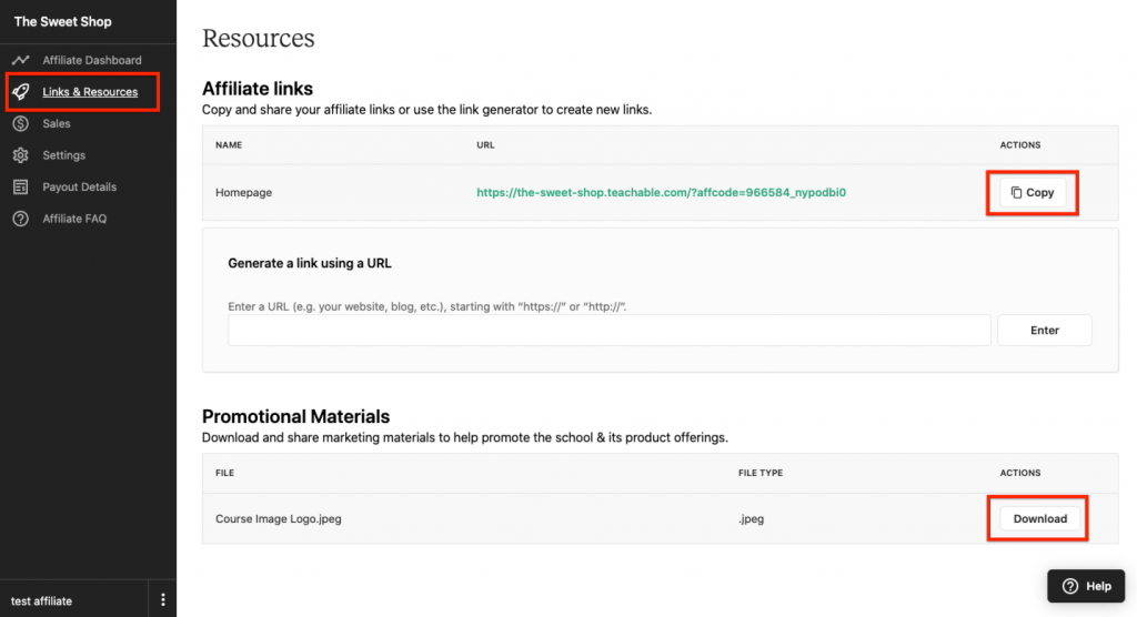 By using affiliate marketing tools to recruit partners to help promote your business on Teachable, you can attract more students for courses. It offers the ability to build and manage affiliate marketing campaigns to sell courses. Instead of a set dollar amount per sale, Teachable affiliates can only be paid a portion of the sales they bring in.