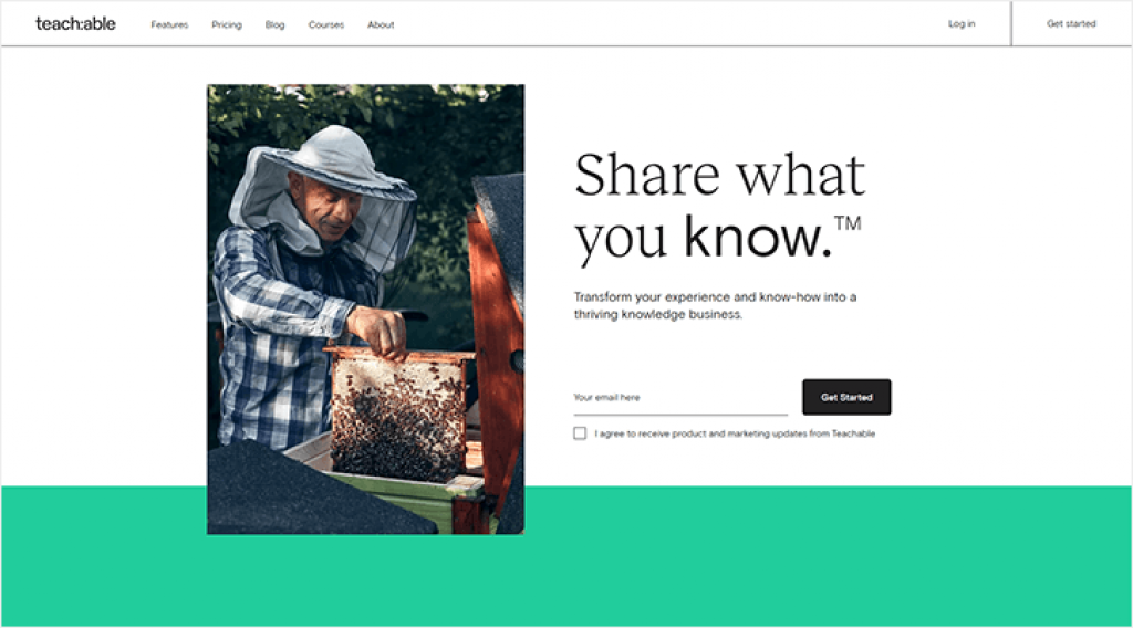 You should first select “Get started” on Teachable’s main page to register for an account.