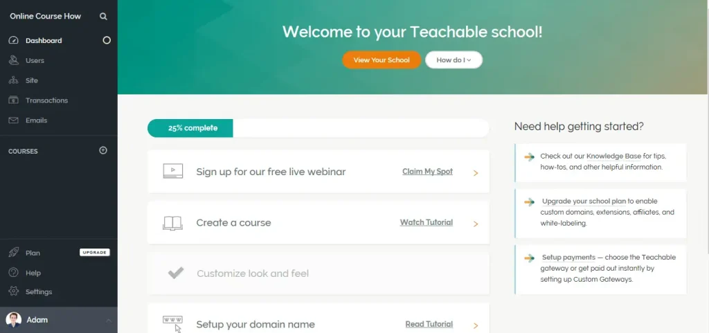 One of the best things about Teachable is how easy it is to get started. The platform is designed for course creators who want to sell their courses without having to worry about the technical side of things. Teachable is easy to use–you just need to create an account and do some initial setup.