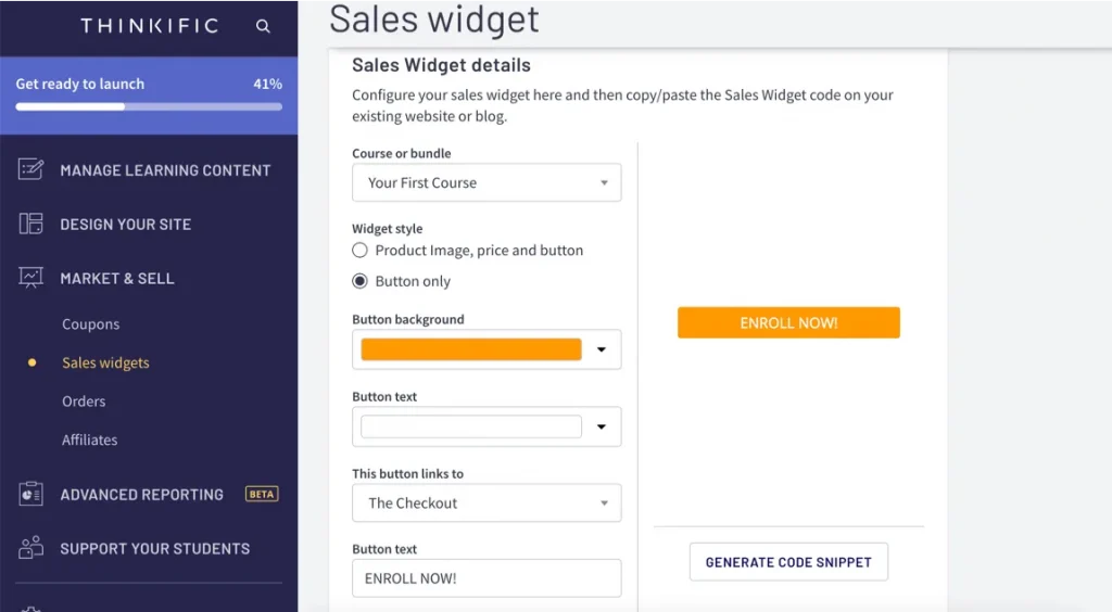 ● Sales and marketing tools – This is one of the main advantages of using Thinkific. The platform is extremely well-suited for boosting sales and engagement through a variety of tools.