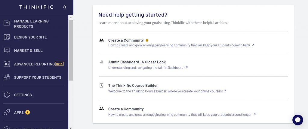 In addition, the Thinkific Training Center offers a free course called “The Thinkific Fast Track’ to teach beginners about creating, promoting, and selling their courses efficiently.